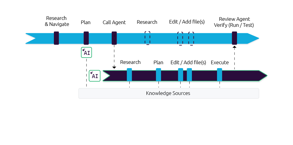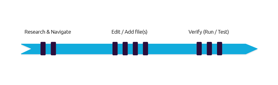 In 2024, agents where introduced which changed the workflow a lot, definitely in combination with AI assistants that still have a prominent place in the IDE. Now users navigate through the repository, identifying what needs to be changed, or even asking the agent to help them plan the changes, followed up by requesting the agent to do the work. The agent proceeds to research the best approach for completing the task, edits the changes, and executes this. Meanwhile, a developer can still intervene by making manual edits, or work in combination with an AI assistant (for code completion and suggestions).