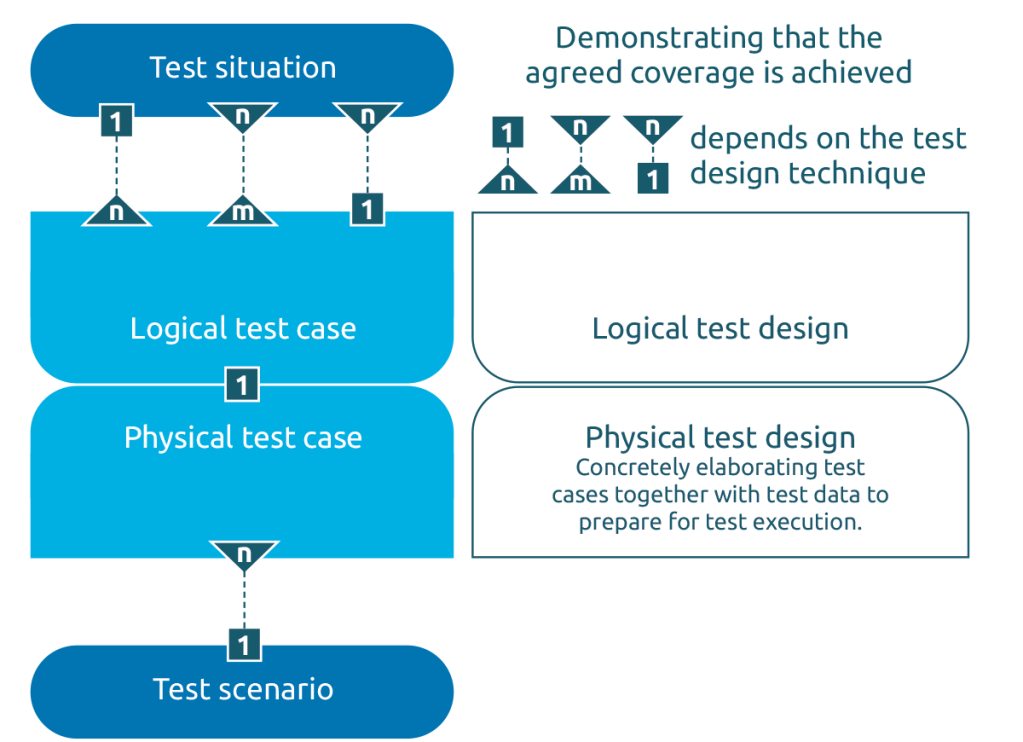 The test design leads to a hierarchical structure of test situations – test cases – test scenario. These terms are discussed in detail further on in this section. The creation of test cases follows the following generic steps: